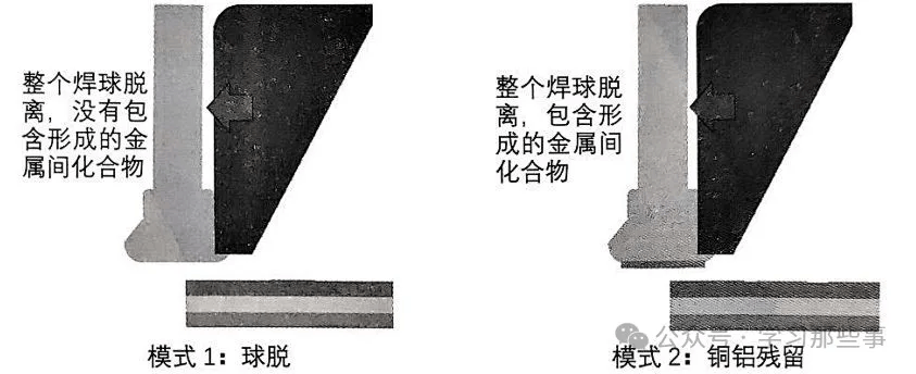 焊接面残留:经推力作用后,焊球的焊接面会残留铜铝材料或仅残留引线本身材料(如铜材料)